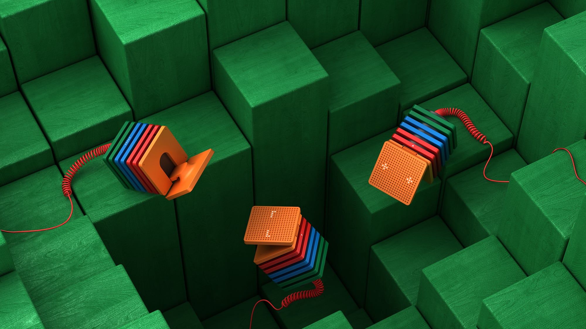 利用模块合成器等Sound Generater来随机生成了很多有趣的声音,然后在里面选出适合的声音搭配在不同的位置。